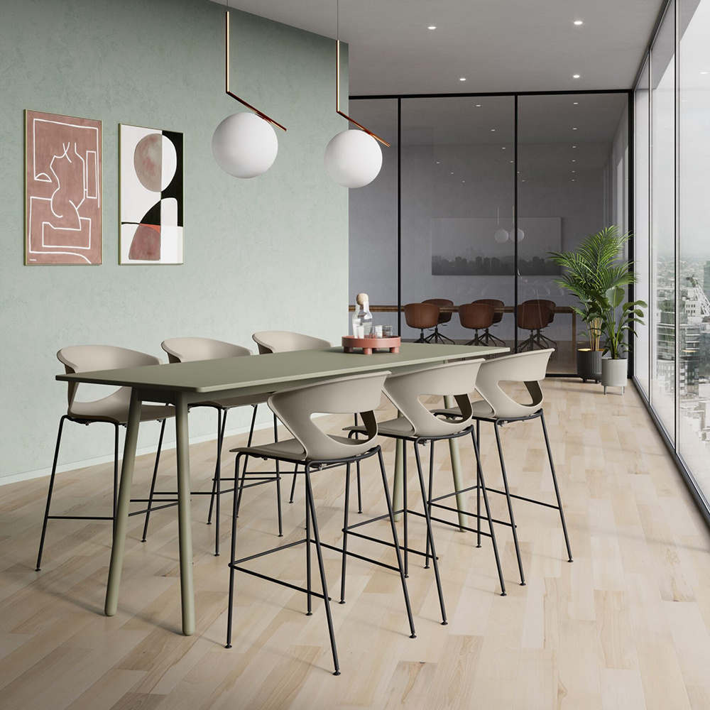 Met een zithoogte van 72cm, kunnen de Kicca barkrukken moeiteloos gebruikt worden aan receptiebalies, sta-vergadertafels en aan hoge keukentafels. Door zijn speels karakter, trendy kleuren en duurzame materialen is deze barkruk inzetbaar bij tal van toepassingen. Zijn design wordt geaccentueerd door gekromde lijnen die u laten genieten van een uitmuntend zitcomfort. Bovendien kan u uw voeten laten rusten op de onderste horizontale stang. De barkruk Kicca is voorzien van een 4-poots onderstel. De zitting is van kunststof. De barkruk Kicca is in vele kleuren te bestellen.