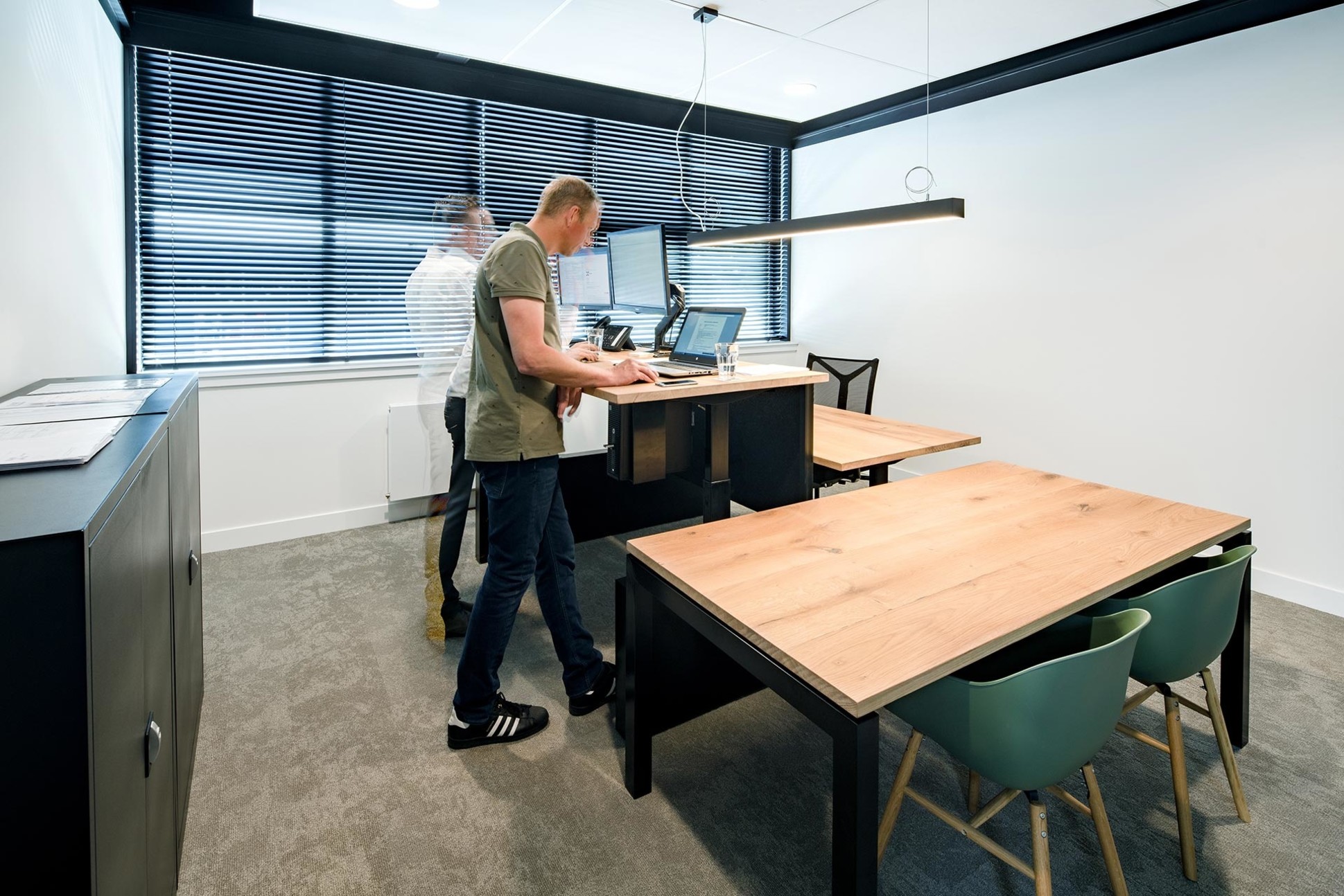 Een zit/sta werkplek is een must voor meer beweging op het werk. De variabele hoogte-instelling is ideaal voor de combinatie van zittend en staand werken. U zult zo minder vermoeidheid ervaren, minder rugklachten hebben en uw productiviteit zal aanzienlijk verhogen. Zorg er wel voor dat de beenruimte onder het werkvlak voldoende groot is (minimum 70 cm), zodat zittend werken mogelijk blijft. De zit-sta tafel van Inofec is elektrisch (met een drukknop) verstelbaar van 70 tot 116 cm en wordt volledig gemonteerd geplaatst. Bij een verstelbare tafel kan ook steeds geopteerd worden voor een extra stasteun (zie hieronder).