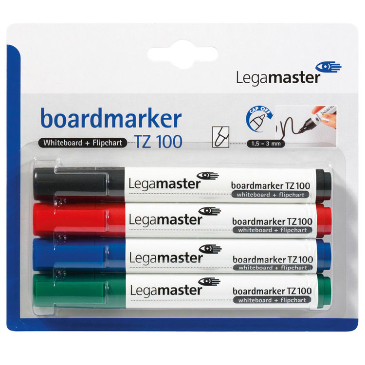 Deze markers zijn geschikt voor flip-overpapier en whiteboards. Bij het beschrijven van een papieren vel gaan deze stiften niet 'doorbloeden'. Op die manier blijven de onderliggende vellen schoon. Dit assortiment bevat 4 kwaliteitsmarkers in de kleuren zwart, rood, blauw en groen. Bovendien zijn alle kleuren navulbaar.