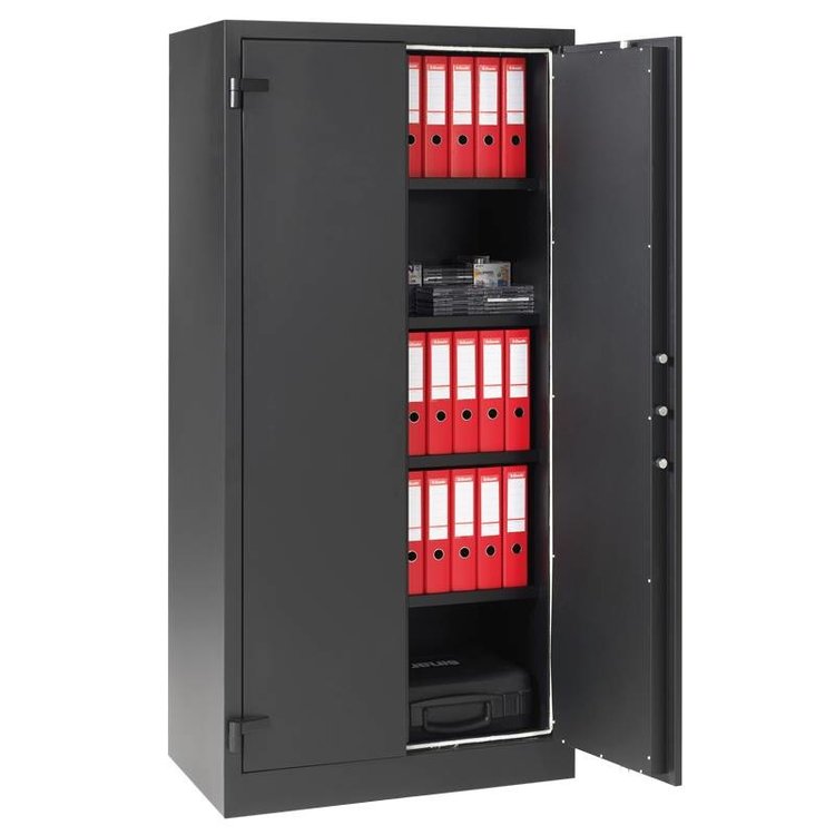 De brandwerende kast met een hoogte van 195 cm is geschikt voor het archiveren en opbergen van belangrijke documenten en papieren. Dankzij zijn thermische isolatie (DIN 4102) en veiligheidsslot met 4-puntssluiting, mag u er zeker van zijn dat de inhoud, gedurende 30 minuten, goed beschermd is tegen brand. Bovendien worden er bij deze brandvertragende kast 4 verstelbare legborden meegeleverd, waardoor u de indeling van de kast volledig naar uw eigen wensen kan inrichten.