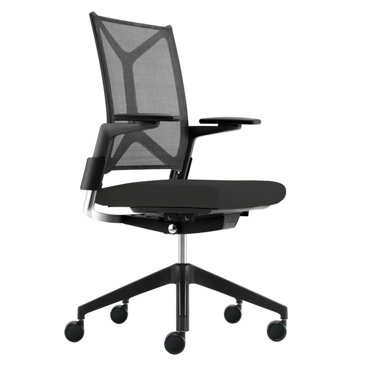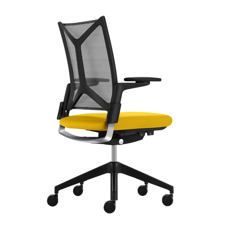De ergonomische bureaustoel Camiro maakt deel uit van een serie stoelen die door Martin Ballendat voor flexibele werkplekken werden ontworpen. Bij een flexibele werkplek of flexwerkplek maken meerdere mensen gebruik van dezelfde stoelen en bureaus. Om die reden werd de Camiro uitgerust met een synchroonmechaniek die zich automatisch aan iedere gebruiker aanpast. De zithoogte, zitdiepte en hellingshoek van de zitting zijn middels intuïtief geïntegreerde bedieningsknoppen makkelijk en snel in te stellen, waardoor de ergonomie voldoet aan de EN 1335 norm. Ook de 1D-armleggers zijn in hoogte instelbaar. Het rugframe van dit kantoormeubel is dé visuele handtekening en zorgt voor een smaakvolle uitstraling. Laat dankzij de Camiro uw kantoormeubilair schitteren bij uw klanten, contacten en medewerkers!