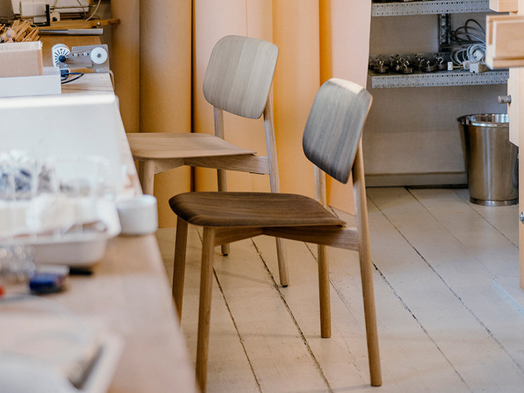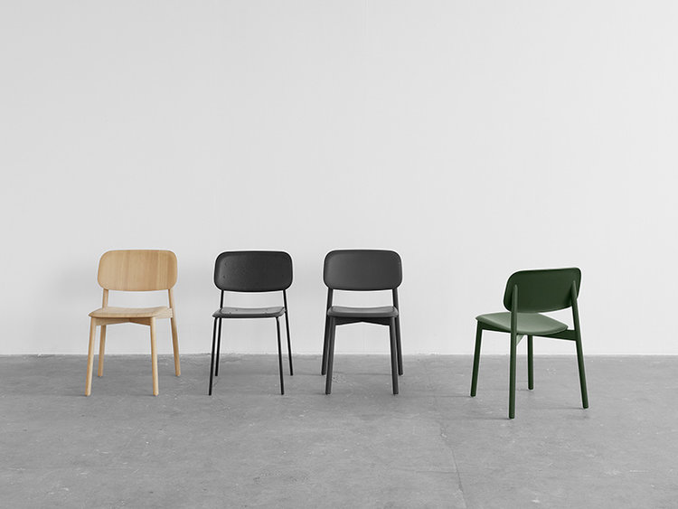 Het onderstel van de Soft Edge Steel beschikt over een 4-poots zwart gelakt stalen frame dat een mooie combinatie vormt met de zitting en rugleuning die een zwart gekleurde eikenfineerlaag kregen. Het onderstel van de Soft Edge Wood is vervaardigd uit massief eikenhout en vormt één geheel met de zitting en rugleuning die een eikenfineerlaag kregen. Beide stoelen zijn 51,5 cm breed, 52 cm diep en 78 cm hoog, en hebben een zithoogte van 46 cm.