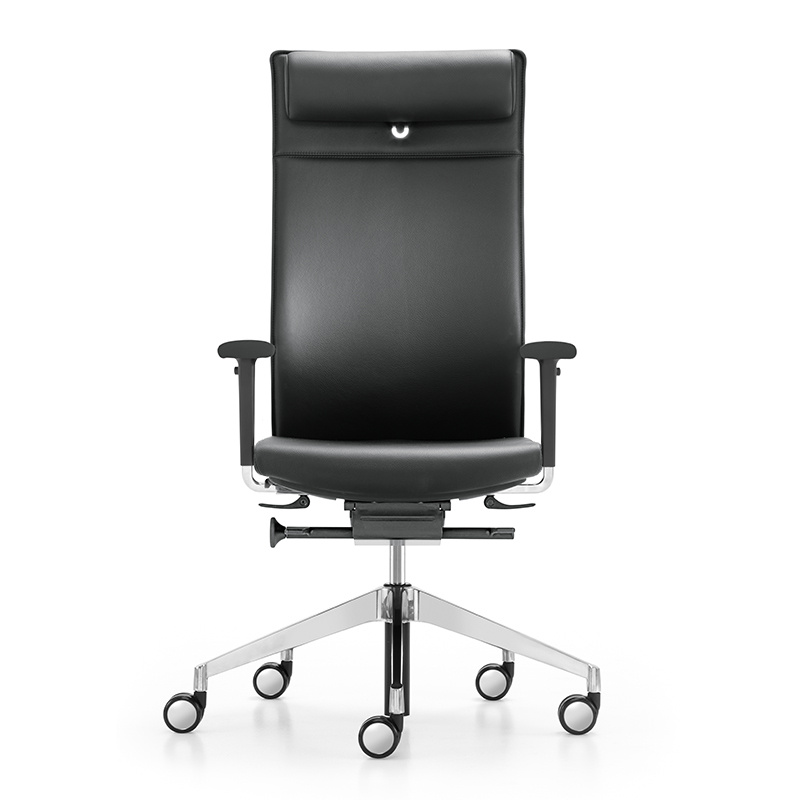 De hoge rugleuning, zitting én 2D-verstelbare armsteunen van deze luxueuze directiezetel zijn kwalitatief afgewerkt in echt leder. Daarnaast is deze directiestoel ergonomisch goedgekeurd volgens de strenge (N)EN 1335 norm inzake ergonomie op de werkvloer.