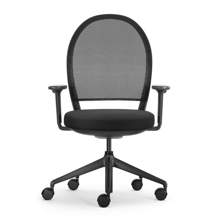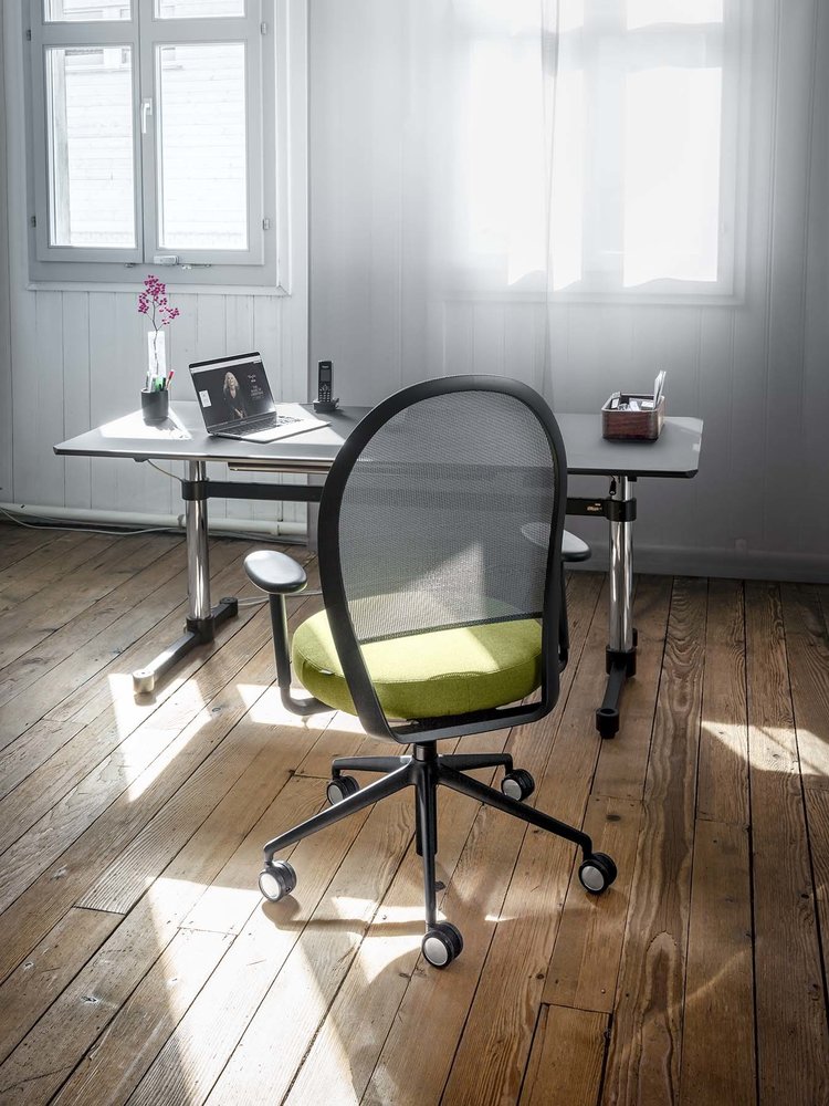 Marva Net is een bureaustoel met een huiselijke look. Alle technische snufjes zitten bijna helemaal verborgen, maar toch heeft deze bureaustoel alle functies en instelmogelijkheden die u van een ergonomische topper mag verwachten: synchroonmechaniek met automatische tegendruk instelling voor dynamisch zitten, nauwkeurige afstelling van de zitdiepte en rugleuning, 2D armleuningen... Op aanvraag zijn er zelfs nog tal van andere opties verkrijgbaar! Deze bureaustoel beschikt over een zwarte kunststof kruisvoet en is verkrijgbaar in een kwaliteitsvolle, gestoffeerde zitting en al even kwalitatieve rugleuning in netbespanning voor extra ademend karakter.