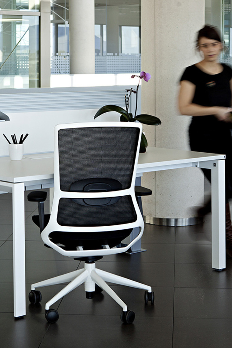 Actiu TNK A500 bureaustoel met zitting en rugleuning in kwalitatief afgewerkte stoffering, inclusief verstelbare armleggers in zwarte kunststof.