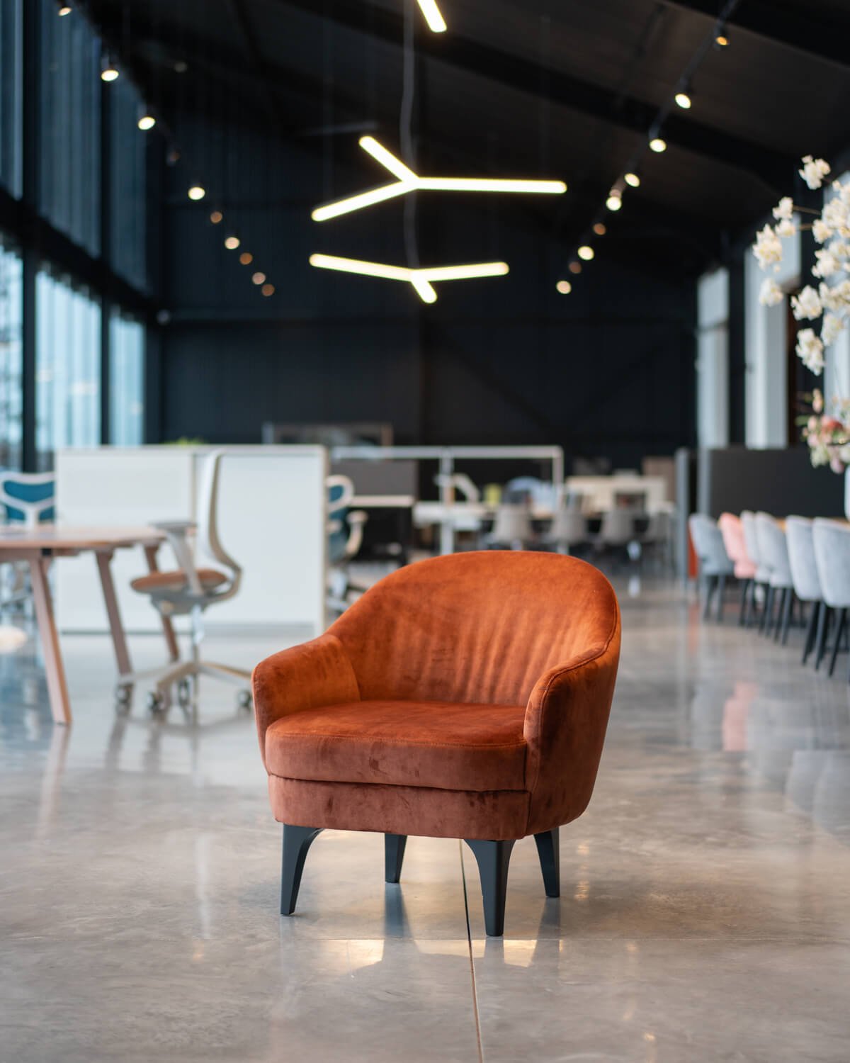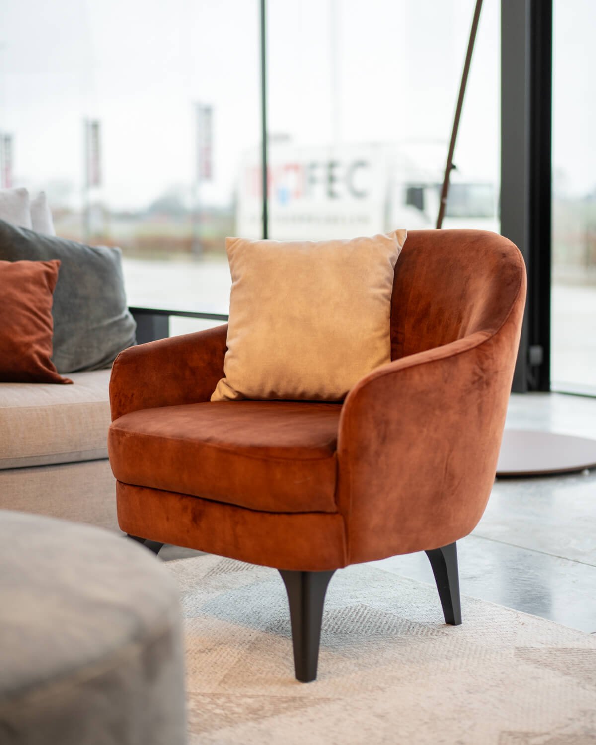 Gezellige fauteuil die perfect tot recht komt in een directiebureau, ontvangstruimte of informele meeting corner.