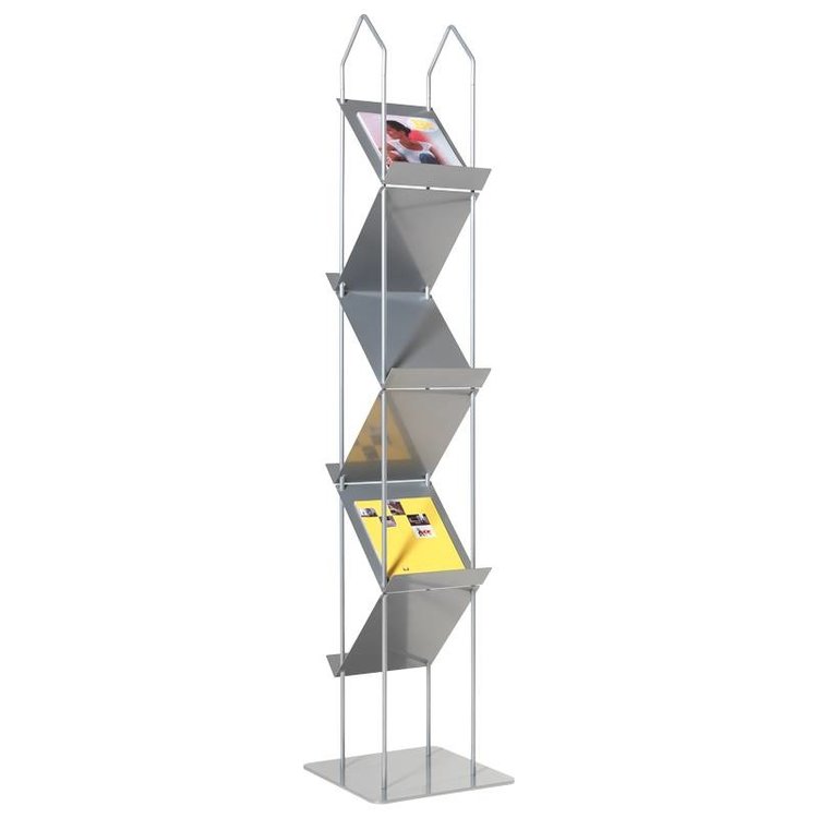 Deze metalen folderkast is ideaal voor het presenteren en opbergen van uw tijdschriften en folders. Op de opklapbare legborden presenteert u overzichtelijk uw documentatie en de onderkast biedt voldoende opbergmogelijkheden. Leverbaar in 3 kleuren.