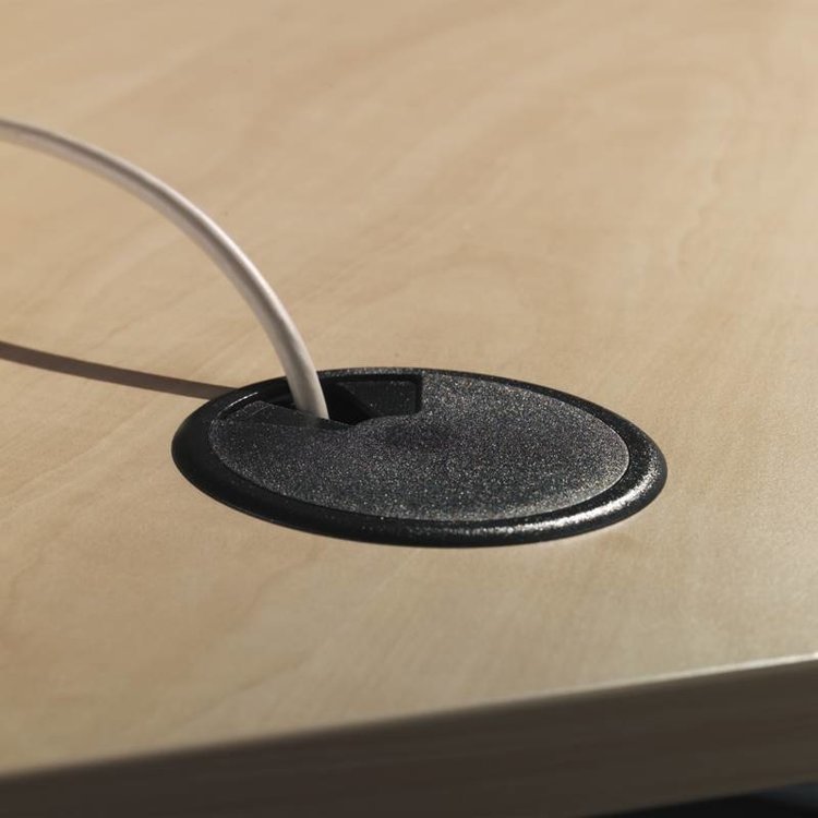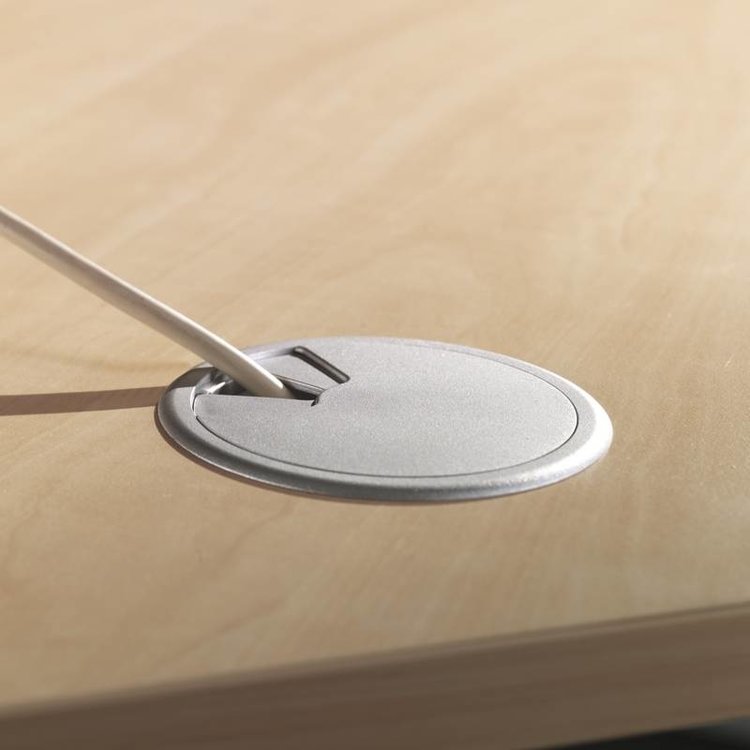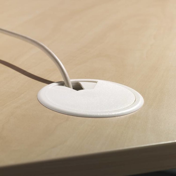 Kabeldoorvoer Ø 8 cm voor montage in een bureaublad. Met deze kabeldoorvoer leidt u alle kabels van uw computer, printer, netwerk,... eenvoudig door het blad naar de kabelgoot. Deze stevige kunststof kabeldoorvoer is leverbaar in de kleuren wit, aluminium en zwart.