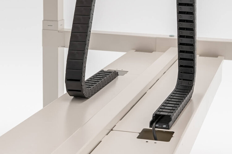 Dankzij deze universele kabelgoot verbergt u al uw kabels aan uw Ergo zit-sta Duo benchwerkplek van 140cm breed.