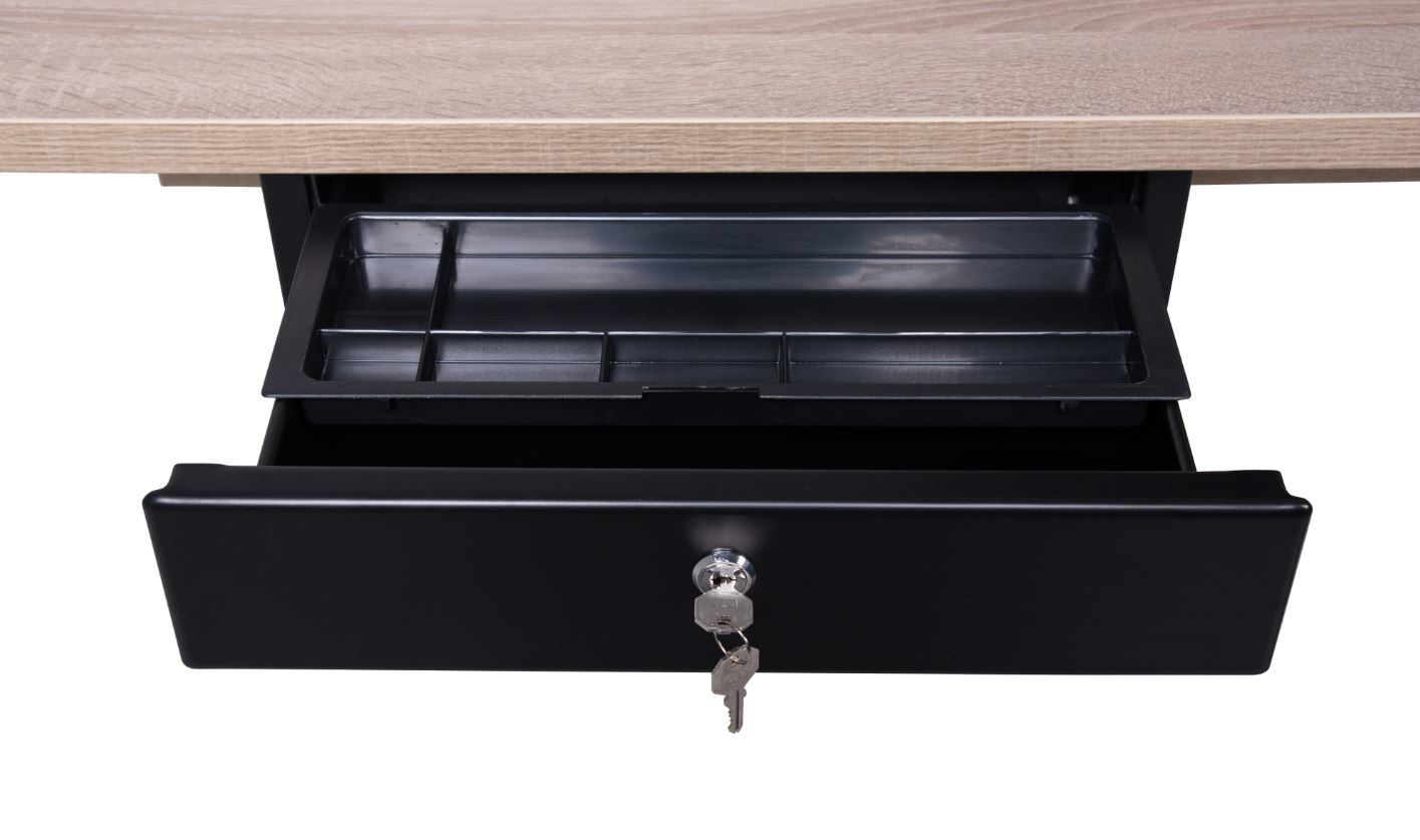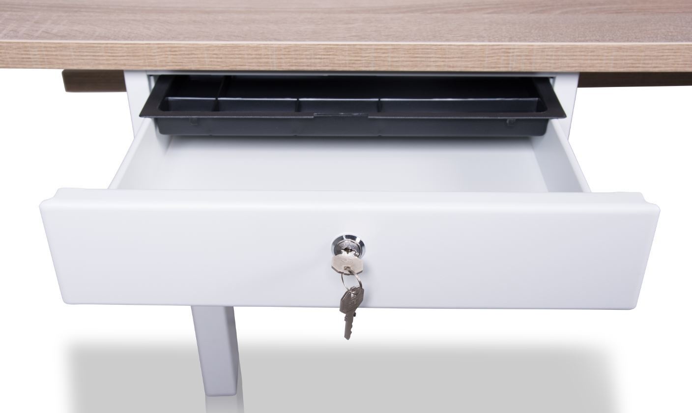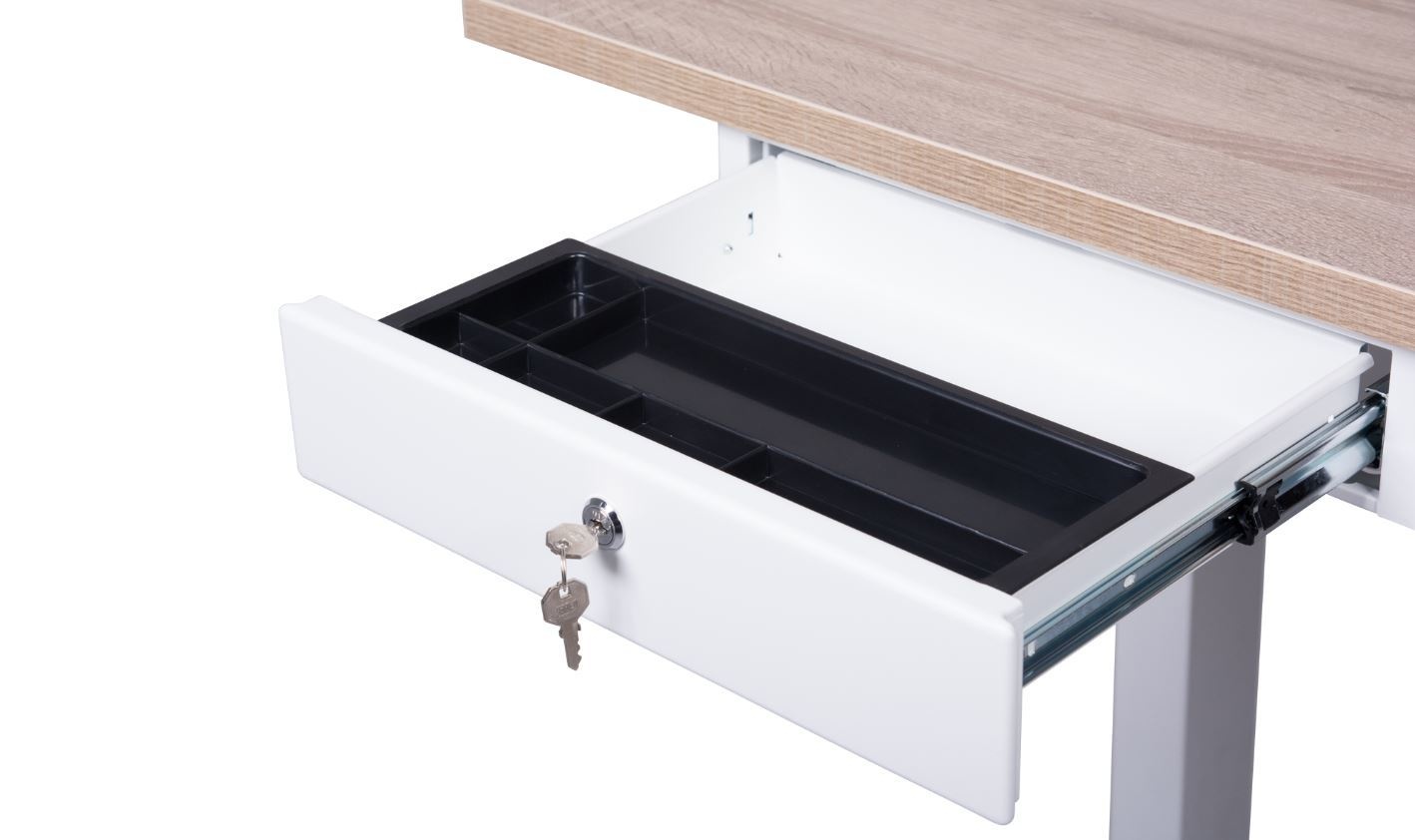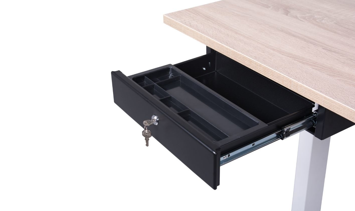 Deze afsluitbare materiaallade voor onze Ergo en Ergo Max zit-sta bureaus met los inlegbakje is perfect geschikt voor het opbergen van schrijfwaren en meer.