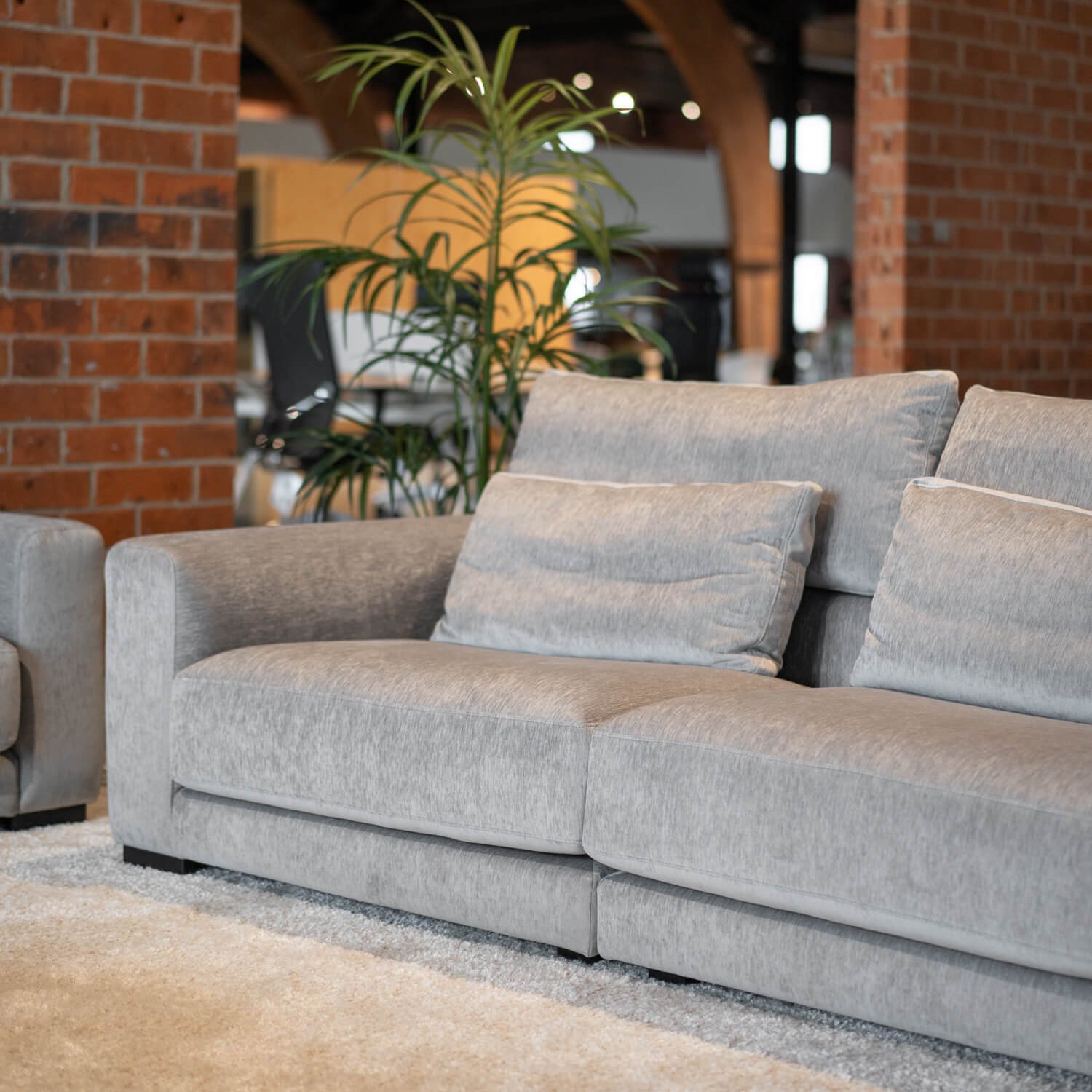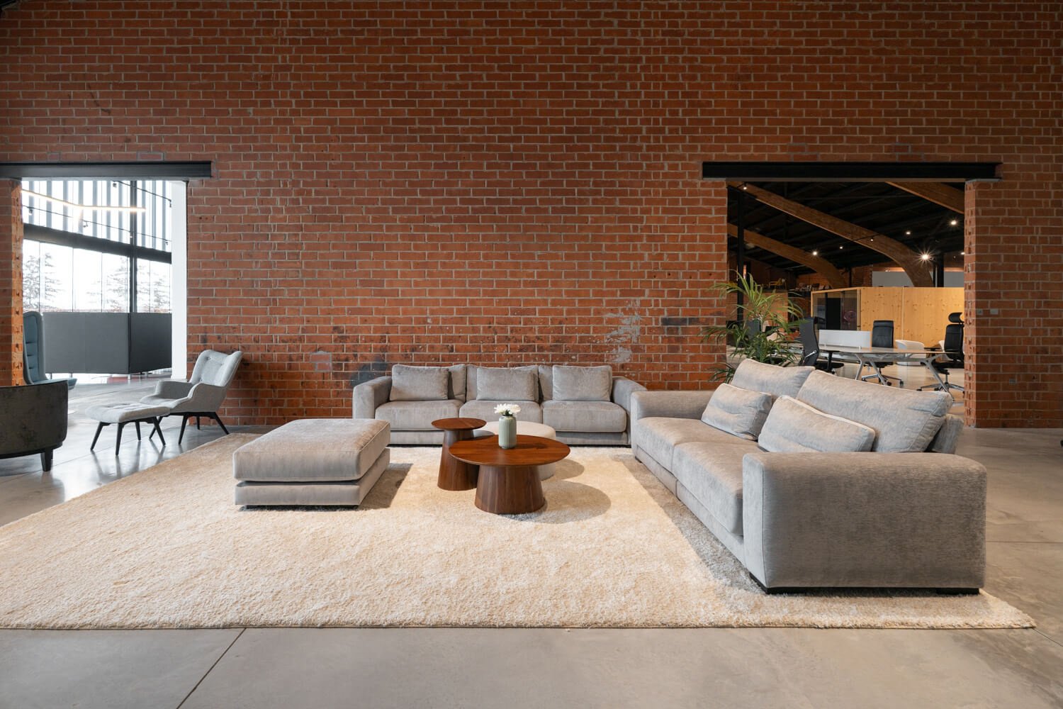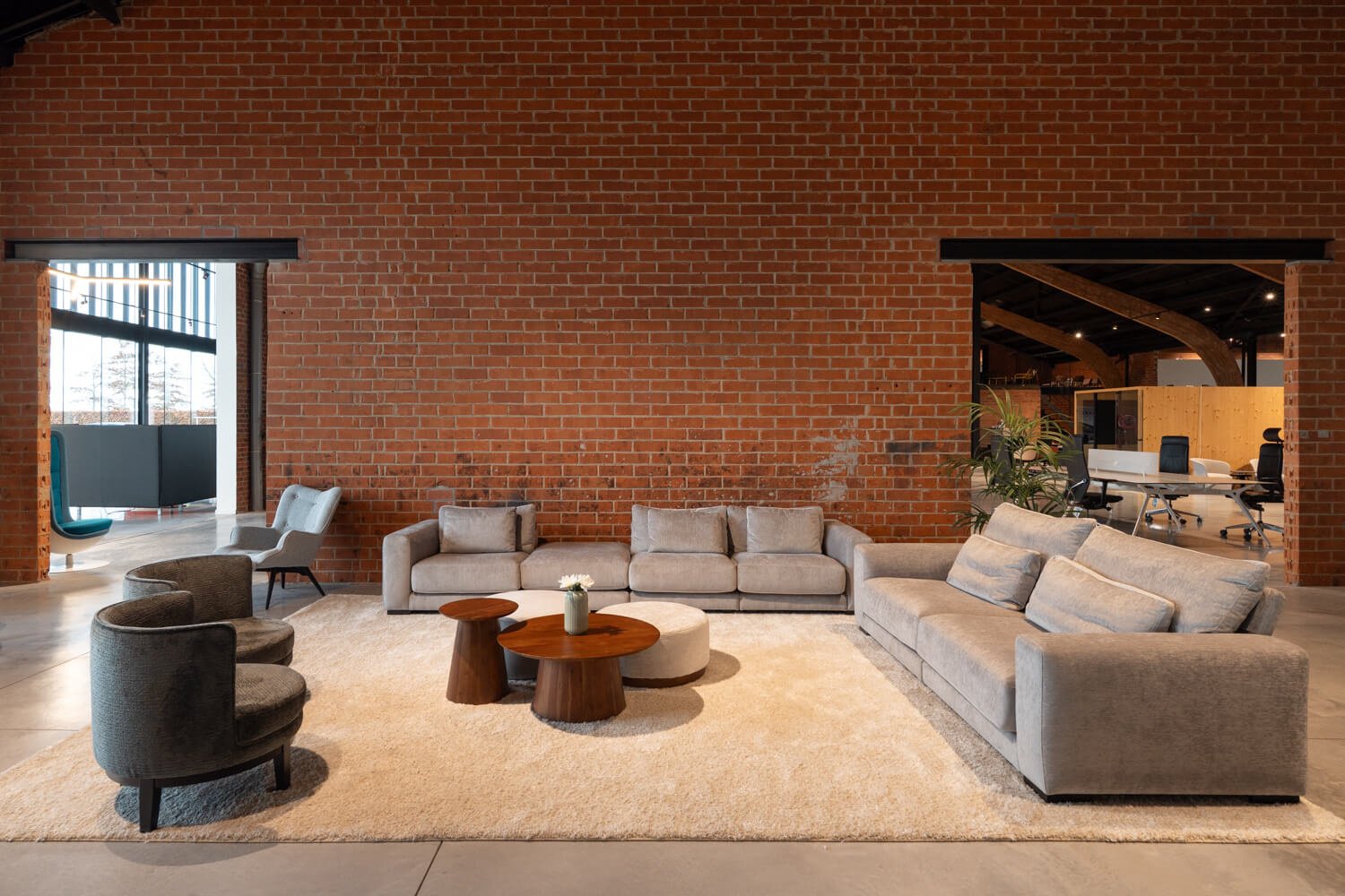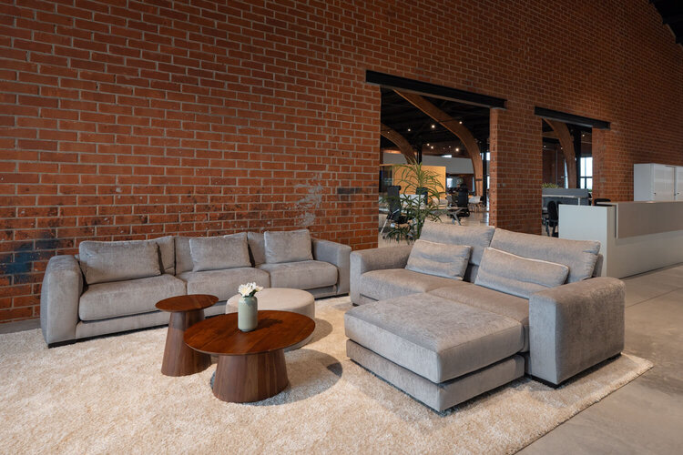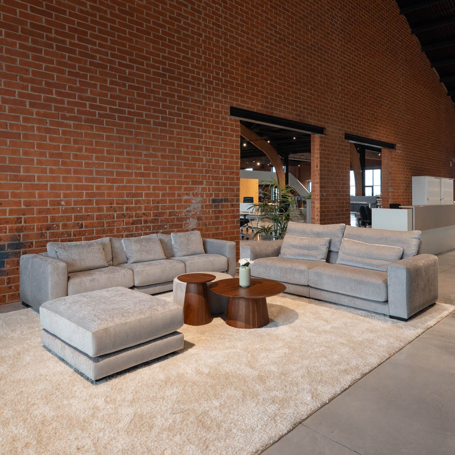 Deze modulaire zithoek Loft bestaat uit een 3-zit, een 2-zit en een poef. Hierdoor kan de zithoek opgesteld worden naar wens, waardoor hij in elke ontvangstruimte, directiebureau of als centrale zithoek geplaatst kan worden.