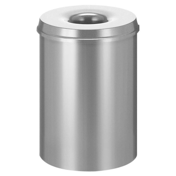 Deze ronde vlamdovende prullenbak is uitgevoerd in metaal en heeft een inhoud van 30 liter. U kunt deze vlamdovende prullenbakken bestellen in 1 kleur.