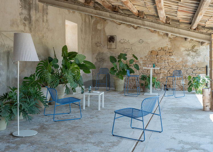 Riviera is een stoelenreeks van het italiaanse designmerk Emu en werd ontworpen door Lucidi / Pevere. De collectie bestaat uit een stoel, kleine fauteuil, ligstoel en kruk; het belangrijkste kenmerk is een elegant minimaal grafisch ontwerp. De volledig gelaste constructie is gemaakt van Fe360 stalen buizen en ronde (half amandel) staven.