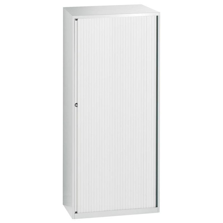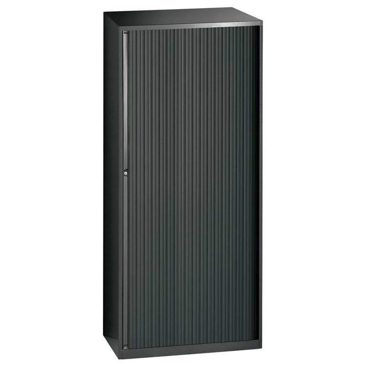 Deze hoge (een breedte van 80cm bij een hoogte van 198 cm) stalen roldeurkast van de Trend meubellijn, is uiterst geschikt voor het opbergen van uw dossiers en kaften. U kan deze kast inrichten met verstelbare legplanken, uittrekframes, uittreklades en uittrekbare legborden. De kast is voorzien van magnetische sluiting, stelvoetjes en kwaliteitsslot met 2 sleuteltjes. De verticale lamellen zin uit kunststof en er is een stalen eindlamel voorzien over de gehele hoogte van de deuren. Leverbaar in 3 kleuren en met krasbestendige structuurlak. De inrichting is enkel leverbaar in de kleur zwart. LET OP: De inrichting, zoals legborden en uittrekframes, dient u los bij te bestellen.