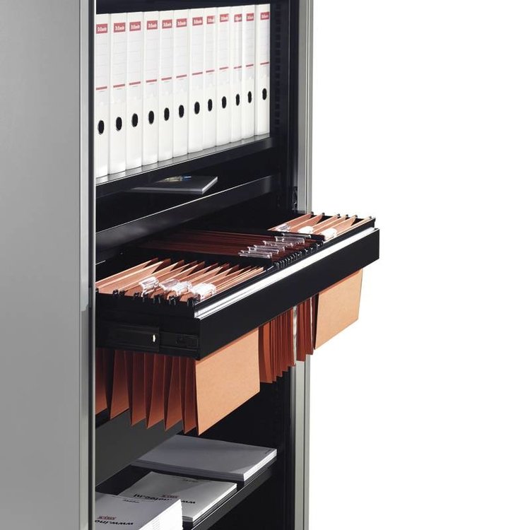 Deze hoge stalen roldeurkast Trend van 100bx198h is zeer geschikt voor het archiveren van uw dossiers en ordners. U kunt deze kast inrichten met verstelbare legborden, uittrekframes, uittreklades en uittrekbare legborden. Leverbaar in 3 kleuren.