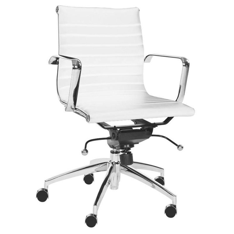 De luxe lederen vergaderstoel Imo met glijdoppen of wielen is zeer geschikt voor uw vergaderruimtes of conferentieruimte. De vergaderstoel Imo biedt veel zitcomfort wat bij lange vergaderingen aangenaam is. Deze vergaderstoel is leverbaar in 2 kleuren: wit of zwart. De De Imo biedt een lage rugleuning en heeft verchroomde vaste armleggers. Het 5-spaaks onderstel is ook uit chroom vervaardigd. Wat zeer handig is aan deze stoel is dat hij in de hoogte verstelbaar is dankzij een ingebouwde gasveer.