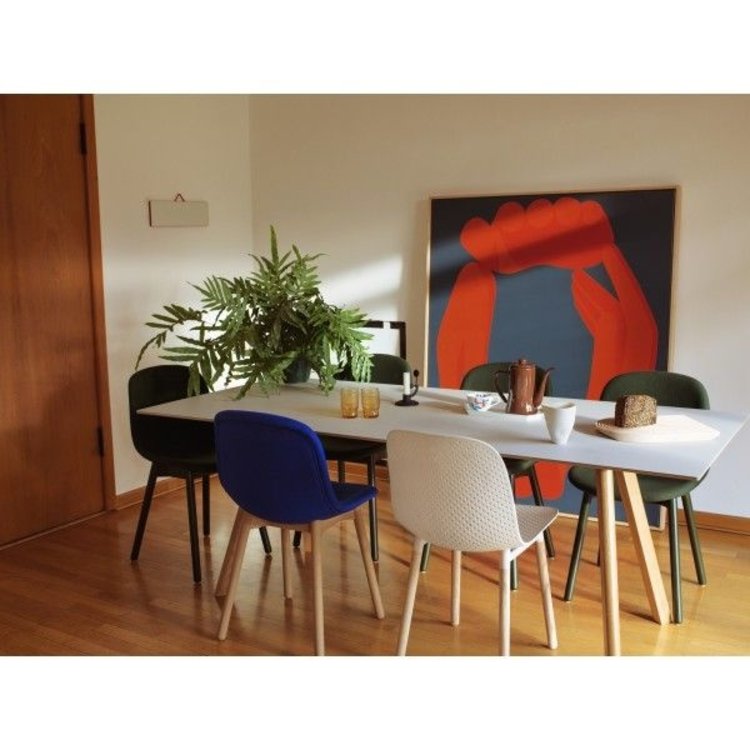 De tafel Copenhague CPH30 van het bekende designmerk HAY werd speciaal voor de Universiteit van Kopenhagen ontworpen en wordt gekenmerkt door een eenvoudige maar functionele en treffende stijl.