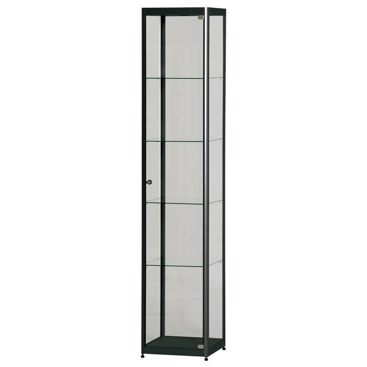 De vitrinekast van 50bx50dx200h is ideaal om uw producten te presenteren. De glazen legborden geven de vitrinekast een transparant karakter. Dit wordt nog eens verstrekt door de sfeervolle verlichting vanaf de bovenkant. Leverbaar in 2 kleuren.