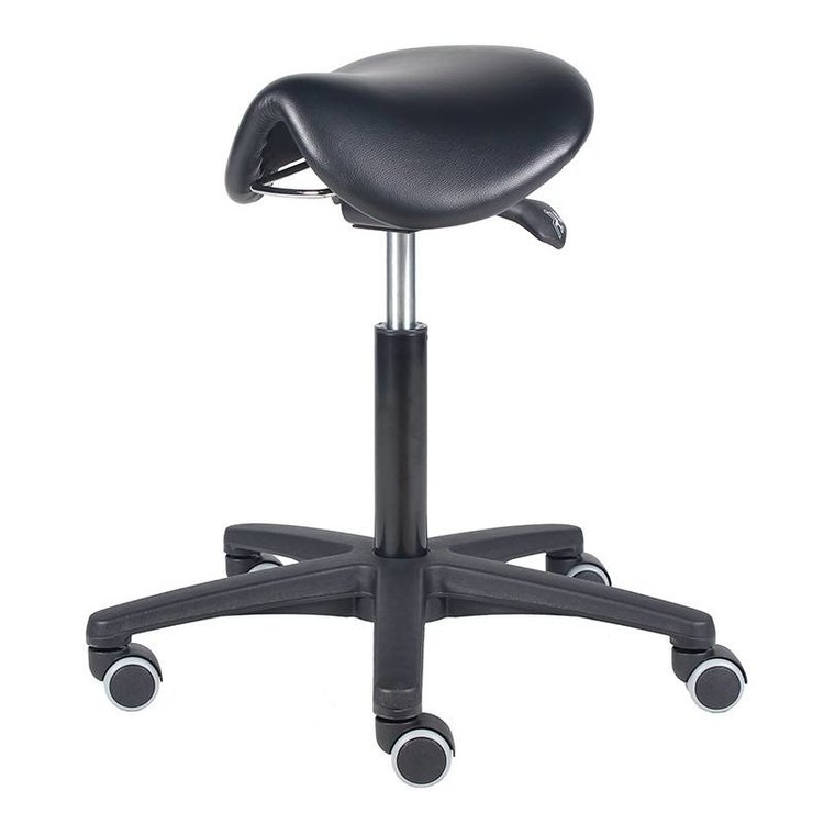 De zadelkruk INO W6 is speciaal ontworpen voor werkzaamheden die veel mobiliteit vragen. De zadelkruk zorgt voor een gezonde rughouding en een uitstekende ondersteuning. De zitting is d.m.v. een gasveer traploos in hoogte verstelbaar tussen 45 cm en 55 cm, wat de zadelkruk INO W6 geschikt maakt voor een werkbladhoogte tussen 70 cm en 80 cm. Ook de zithoek en voetsteun zijn verstelbaar. De zadelkruk is afgewerkt met een kunststof kruisvoet en glijdoppen.